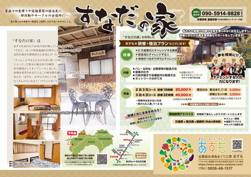 研修を希望される方にはこの家を滞在拠点として活用していただき私たち「あすも」が学んできたことをたくさんの人に伝えていけたらと思っています。